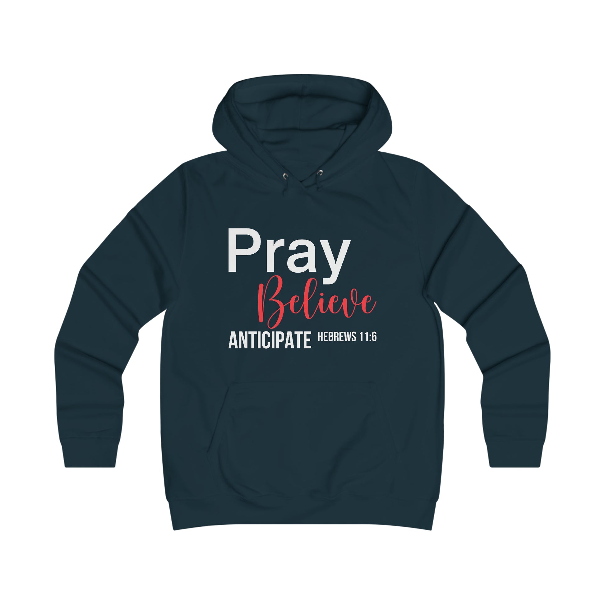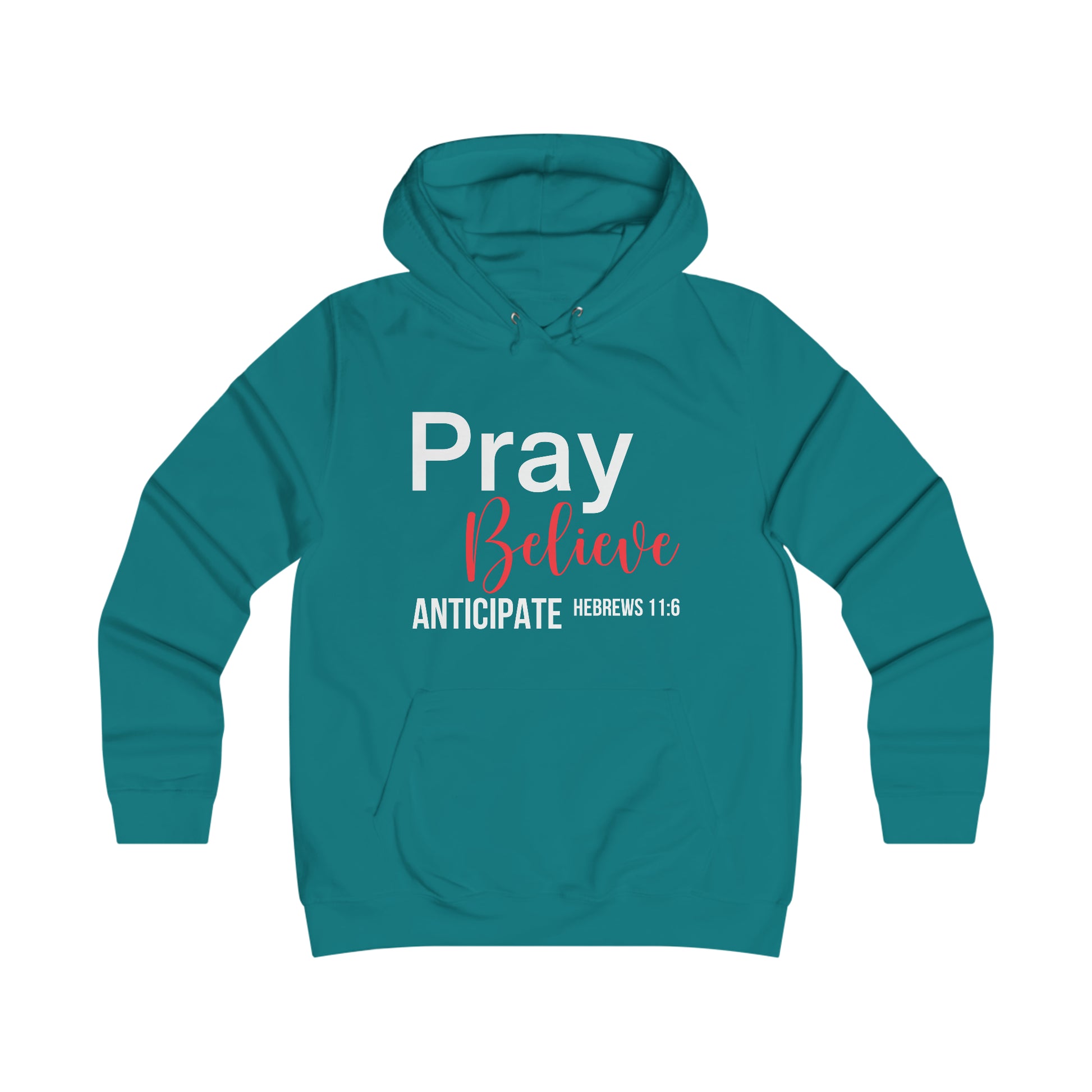 Ladies version of the popular JH001 hoodie. This College Hoodie has a feminine fit and features a double fabric hood, Kangaroo pouch pocket with a small hidden opening for headphone cord feed, ribbed cuffs and hem, self-colored drawstring cords and twin needle stitch detailing.