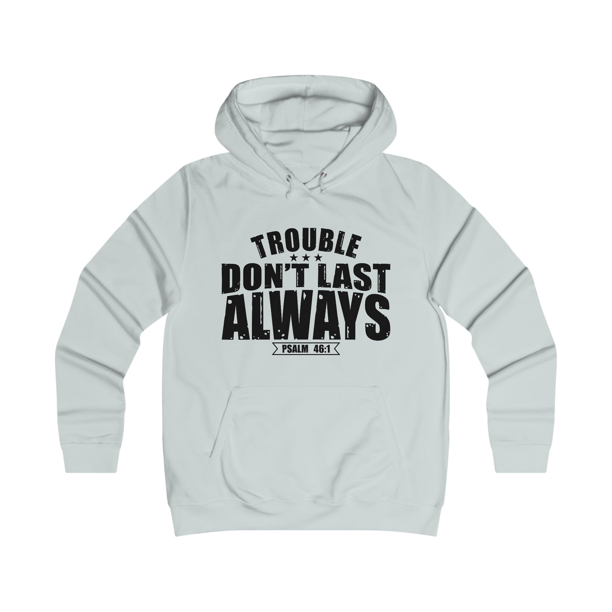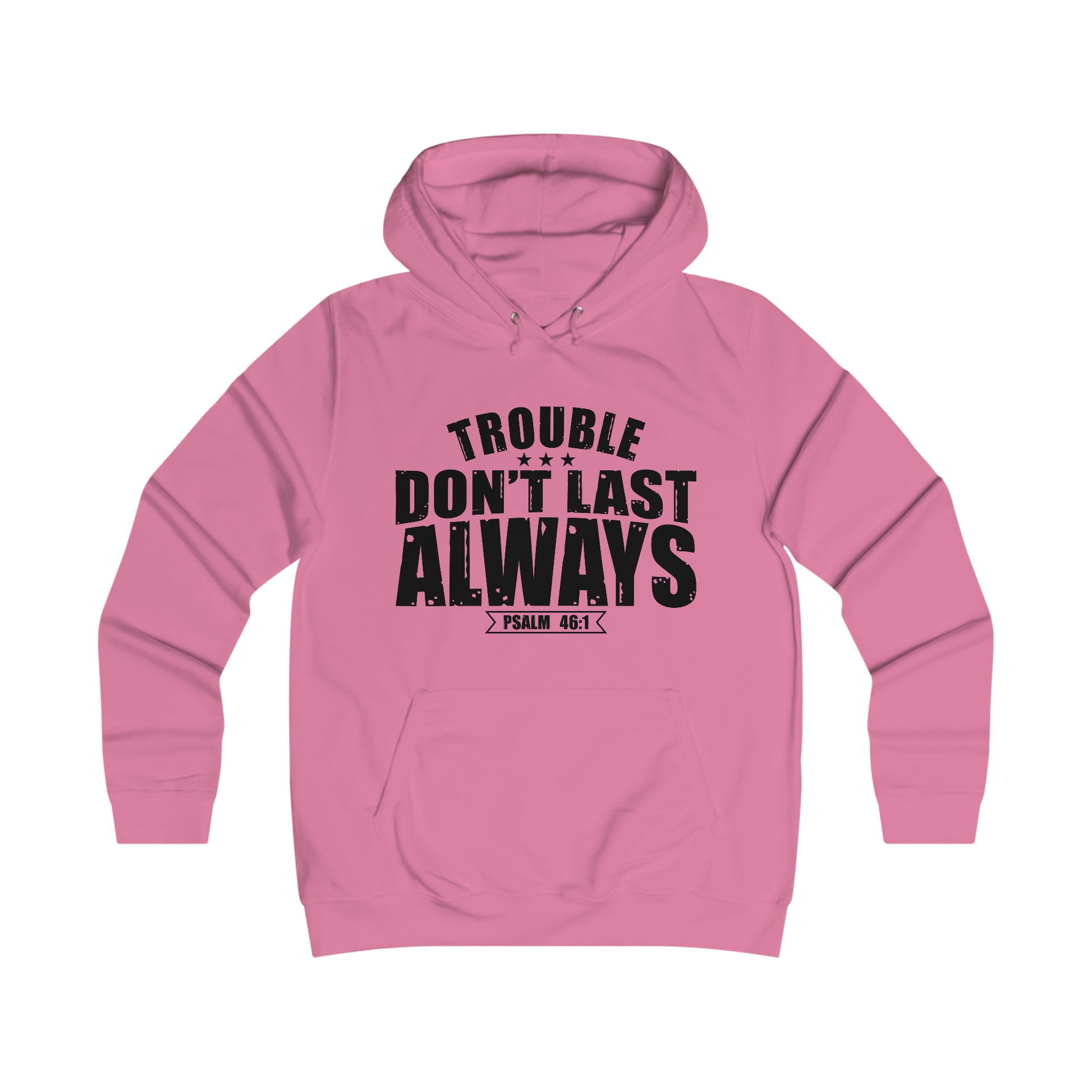 Ladies version of the popular JH001 hoodie. This College Hoodie has a feminine fit and features a double fabric hood, Kangaroo pouch pocket with a small hidden opening for headphone cord feed, ribbed cuffs and hem, self-colored drawstring cords and twin needle stitch detailing.